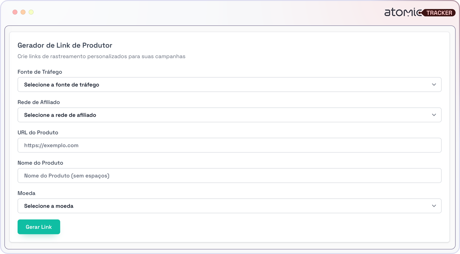 Crie e gerencie todos os seus links de rastreamento (Google, Afiliados, etc.) em um só lugar, acabando com a bagunça das planilhas.